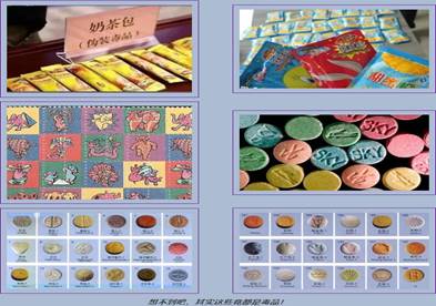 毒品的新型种类有:冰毒、摇头丸、K粉、咖啡因、三唑仑、羟基丁酸、安纳咖、氟硝安定、麦角乙二胺(LSD)、安眠酮、丁丙诺啡等。