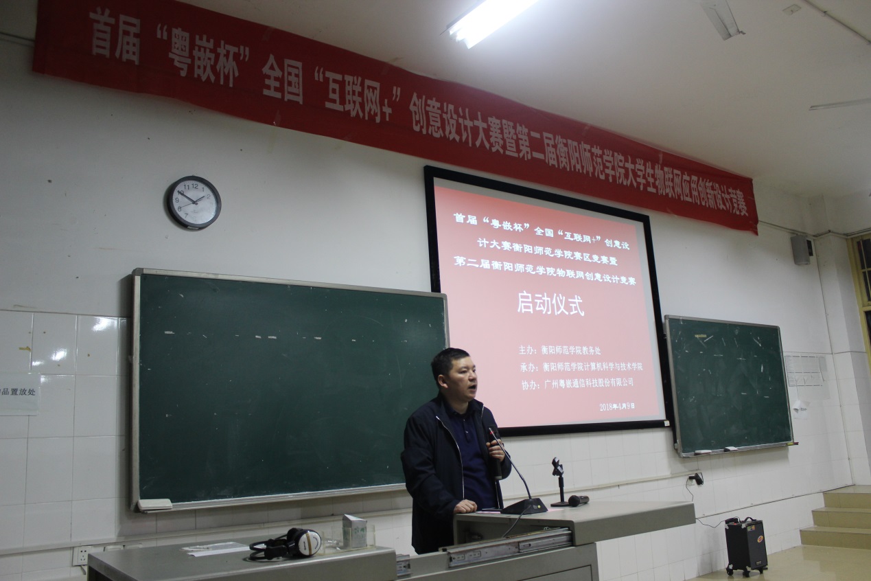 4月9日,亚博取款心丈秒到账在计算机楼211多媒体教室举行了首届“粤嵌杯”全国互联网+创新设计大赛衡阳师范学院站暨第二届亚博取款心丈秒到账物联网创意设计竞赛启动仪式。亚博取款心丈秒到账书记陈洪清、院长李浪、副院长郑光勇、副书记彭正,信息工程学院副院长邓红卫,广州粤嵌通信科技股份有限公司(简称粤嵌公司)校企合作湖南区总监邓梦林、粤嵌众创空间全国运营部负责人吴海波出席启动仪式。亚博取款心丈秒到账和信息工程学院部分老师、15、16、17级学生代表参加仪式。陈坚祯副院长主持启动仪式。