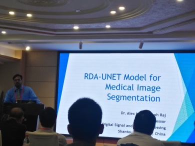 随后,会议进行主题讲座,来自汕头大学的Alex Noel Joseph Raj教授、台湾东华大学杨庆隆教授、香港公开大学的Simon K.S. Cheung教授分别作题为《A RDAU-NET model for lesion segmentation in Breast Ultrasound Images》、《Digital Image Steganography Using Error Correcting Code》、《Mdelling and Analysis of Component-based Distributed System:A Formal Method Based on Augmented Marked Graphs》的报告,三位专家与在场的老师学生们进行了广泛且深入的交流讨论。